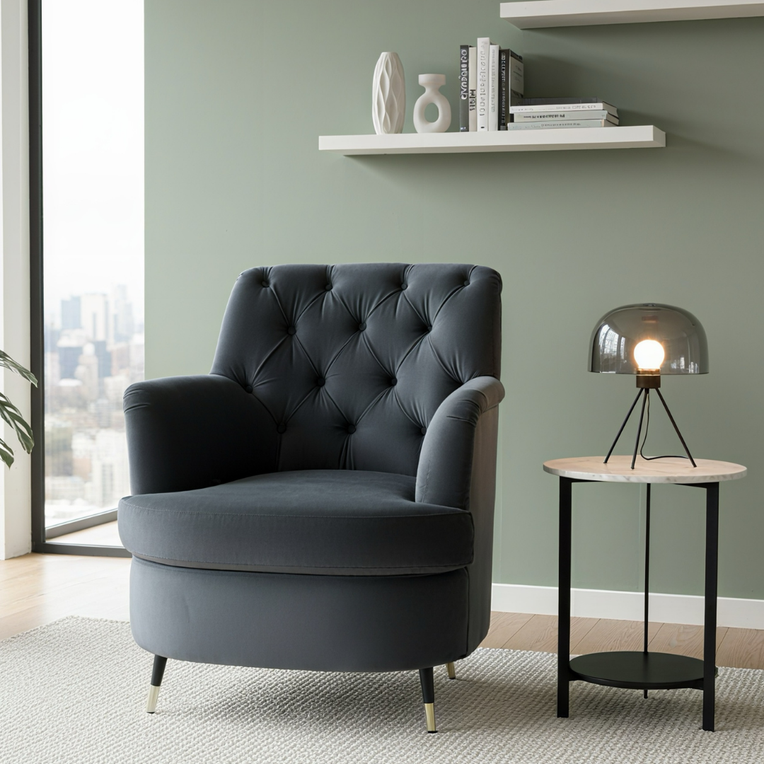 Un fauteuil au design élégant et intemporel, avec une assise généreuse et un capitonnage raffiné, idéal pour apporter confort et caractère à votre intérieur.