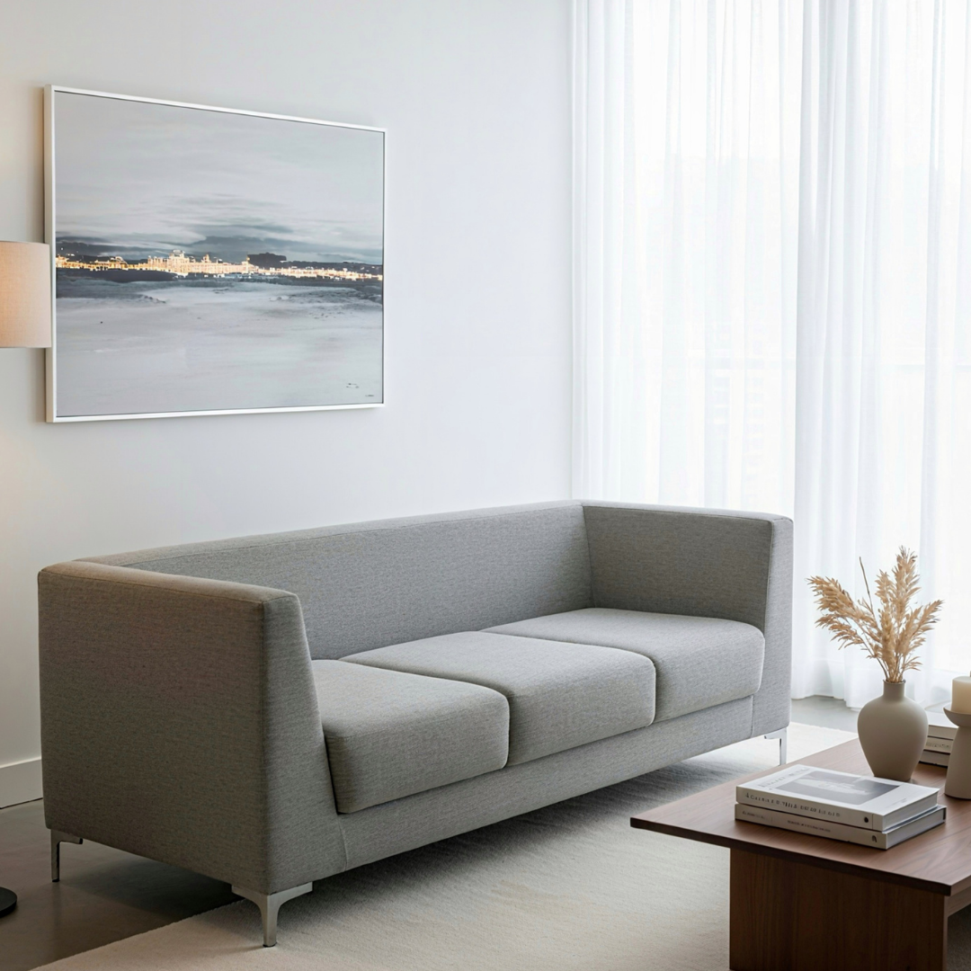 Fauteuil 3 places combinant confort et design raffiné, avec assise spacieuse et matériaux de qualité.