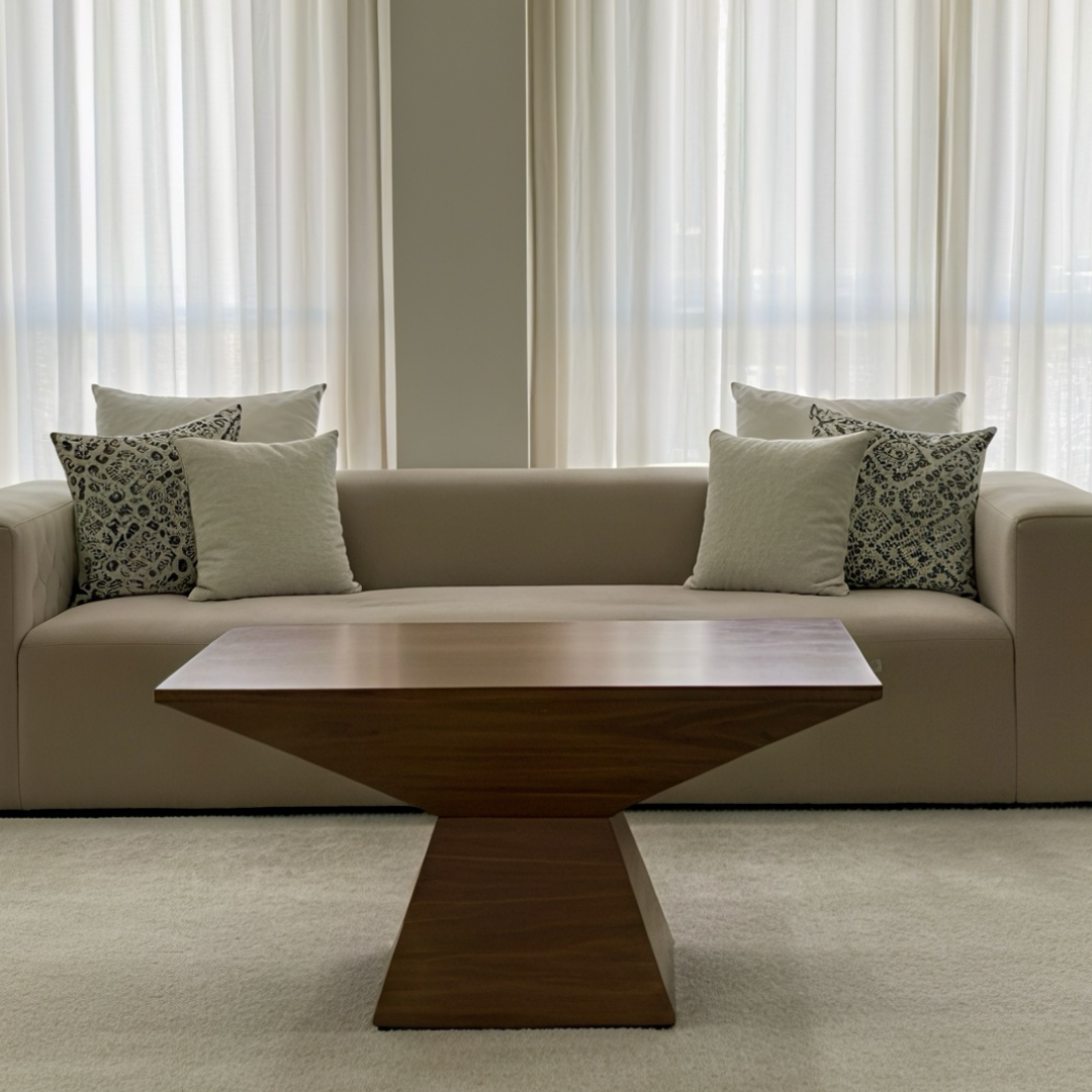 Table basse Apex au style moderne et solide, dotée d’une finition élégante et naturelle.